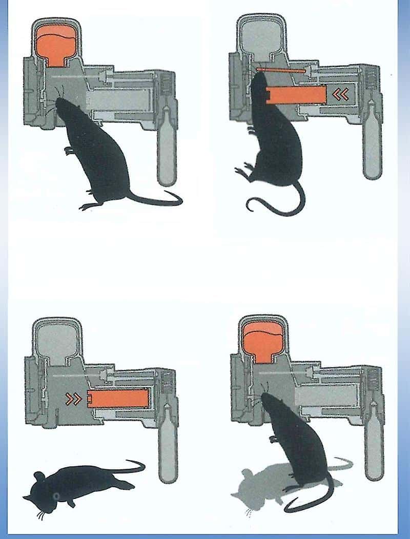 - Automatická pneumatická pasca funguje na princípe využitia CO2 plynu, ktorý rýchlo a efektívne zneškodní hlodavca, keď vstúpi do pasce.