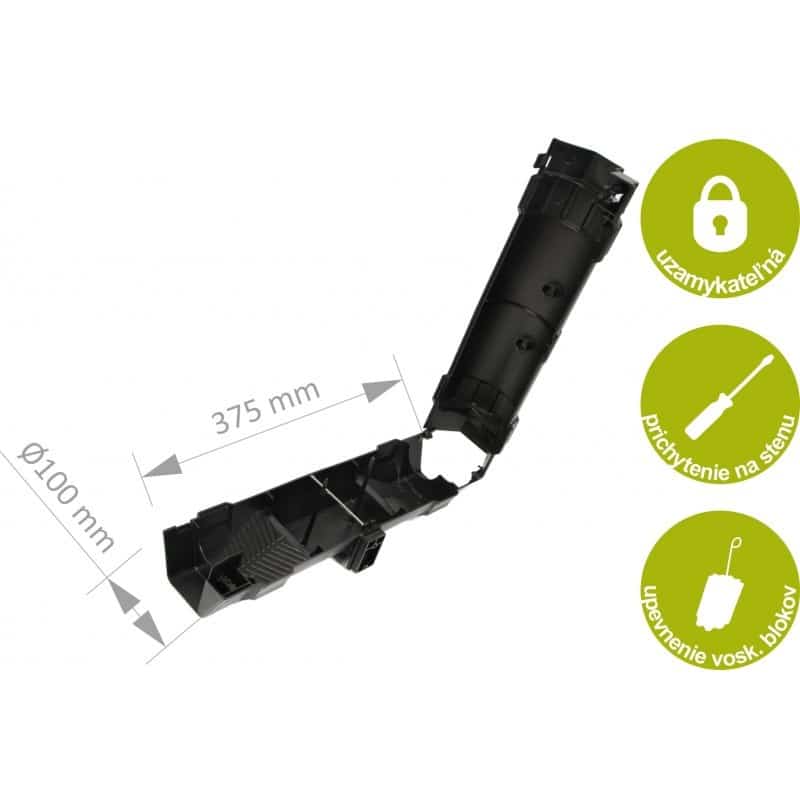 Jedovú staničku umiestnite mimo dosahu detí a domácich zvierat! Pri manipulácii s jedovou nástrahou a následne s jedovou staničkou používajte vhodné pracovné pomôcky. Použitie: myši, potkany Rozmery 37,5 x 10 cm Materiál čierny tvrdený plast FAQ – Často kladené otázky Na aké hlodavce je stanička určená? Na myši a potkany. Je stanička bezpečná pre deti a zvieratá? Áno, vďaka uzamykateľnému mechanizmu. Dá sa použiť aj vonku? Áno, je vhodná do interiéru aj exteriéru. Aké nástrahy môžem použiť? Mäkké návnady aj deratizačné bloky. Je montáž zložitá? Nie, stanička je pripravená na okamžité použitie. Upozornenie Pri používaní deratizačných nástrah vždy dodržiavajte pokyny výrobcu návnady. Nástrahy používajte bezpečne a mimo dosahu detí a domácich zvierat. Pre maximálnu účinnosť vašej ochrany pred hlodavcami odporúčame používať aj kvalitný jed na myši a potkany. Kombinácia našich deratizačných staničiek a efektívnych jedov zabezpečí rýchle a spoľahlivé odstránenie myší a potkanov z vášho priestoru.