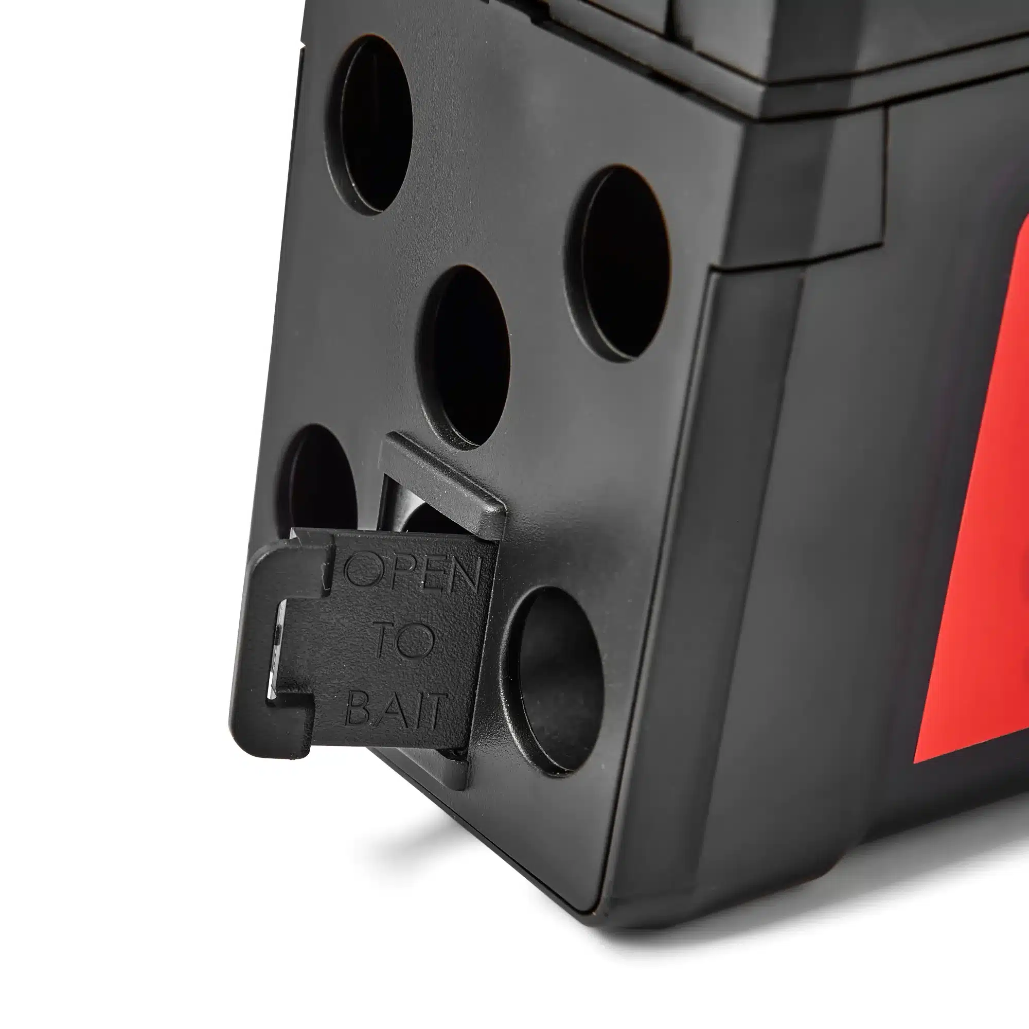 - Otvorte dvierka zabíjacej komory a vložte návnadu (napr. arašidové maslo) do označeného zásobníka.