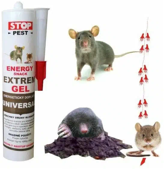 Doplnkové krmivo pre hlodavcov. Vysoko koncentrovaný povzbudzujúci energetický doplnok stravy. Gél je najúspešnejší z celého radu produktov. Jeho mimoriadne vlastnosti spočívajú v tom, že je stále čerstvý, voňavý a veľmi lákavý pre hlodavcov. V tube zostáva stále čerstvý, nezvetráva a je pripravený ihneď na použitie. Obsahuje vybrané pochúťky, rybí tuk a ďalšie atraktanty. Svojou vôňou a chuťou je pre hlodavcov neodolateľný. Nariadenie EÚ: Na výrobkoch sa podľa nariadenia EÚ, nesmie vyskytovať zdravotné tvrdenie, ktoré nie je povolené. Poradenstvo: Účelom poradenstva je nájsť prírodnú alternatívu, ktorá zákazníkovi pomôže nahradiť chemické prostriedky. Kŕmny návod: Denná odporúčaná dávka je 2 g na 1 kg zvieraťa. Túto dávku je vhodné rozdeliť na rannú a popoludňajšiu dávku (1g). Zloženie: pšeničné otruby, kukuričný šrot, tuk, pšeničná múka kŕmna, rastlinný olej, extrakt zelenej kávy, farbivo (celkom 91%). Analytické akostné znaky: hrubý proteín 78%, hrubá vláknina 8%, hrubý tuk 46%, hrubý popol 31%. Použitie: PRE HLODAVCU Náš tip: je vhodné aby gél mal izbovú teplotu 20 až 25 °C. Pokiaľ bude teplota vyššia, dochádza k zvýšeniu atraktivity, predovšetkým sa zvýši aróma pre hlodavce. Súčasne však môže dochádzať k uvoľňovaniu tukov, čo nemá žiadny vplyv na atraktivitu výrobku. Chladom gél tuhne ale nemení sa atraktivita. Balenie: PVC KARTUŠA 230g Pozor pri skladovaní v nižšej teplote nemožno dobre vytláčať!