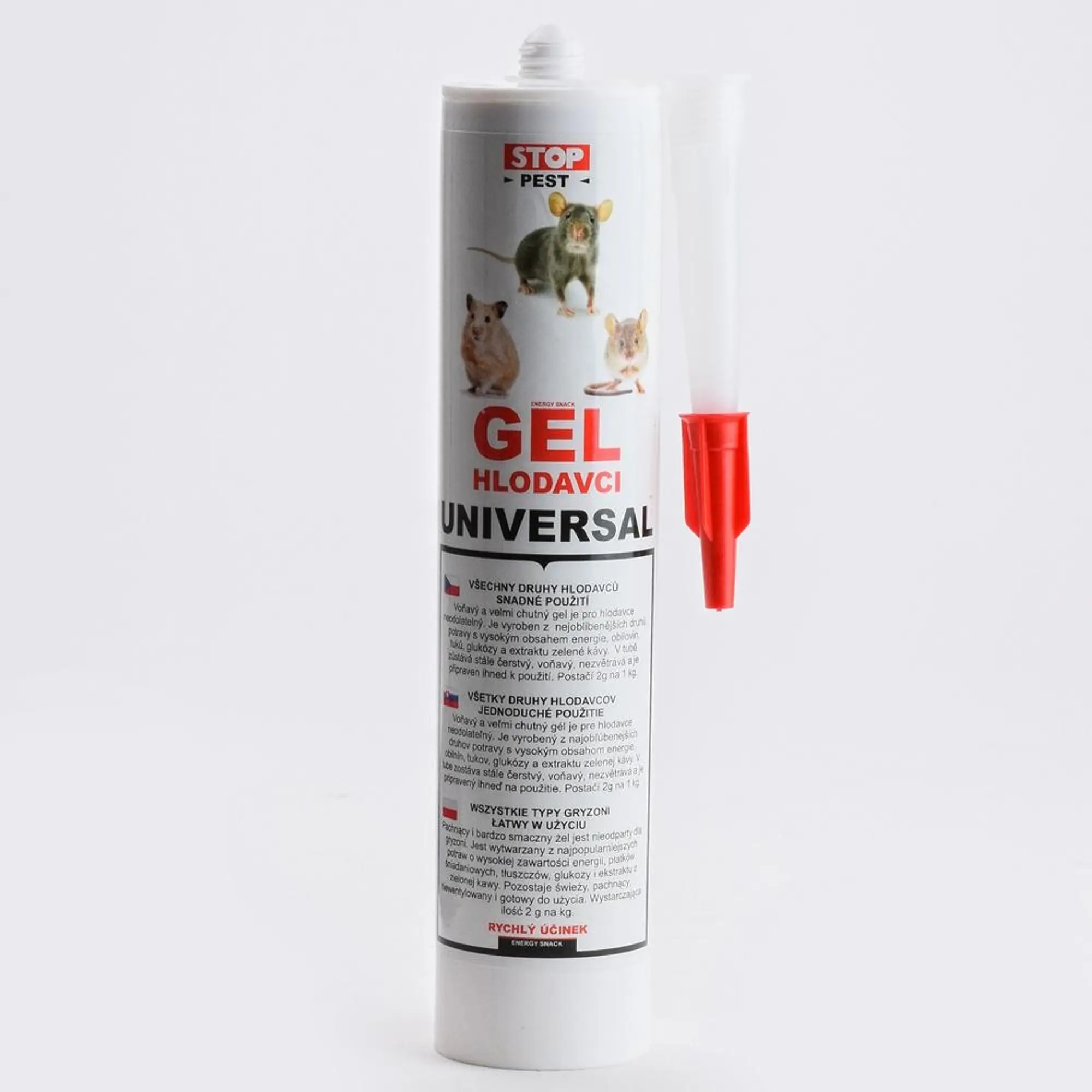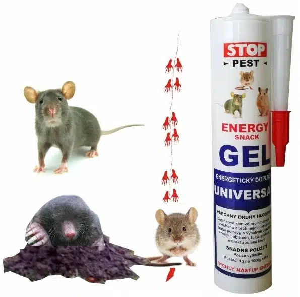 Vysoko koncentrovaný povzbudzujúci energetický doplnok stravy pre hlodavcov (myš potkan, krtko) Energy gél je vyrobený z obľúbených druhov potravy hlodavcov. Ide o vysokokoncentrovaný energetický gél. GÉL je mierne lepivý, priľne na packách, chvoste, srsti, hlodavce sa olížu a gél vždy zožerú. Gél slúži na nalákanie hlodavcov do pasce – v prípade krtka použite odchytovou pascou na krtka rúrková v prípade že chcete odchytiť potkana alebo myš (hlodavce) si vyberte pascu https://odpudzovace.sk/pasce/