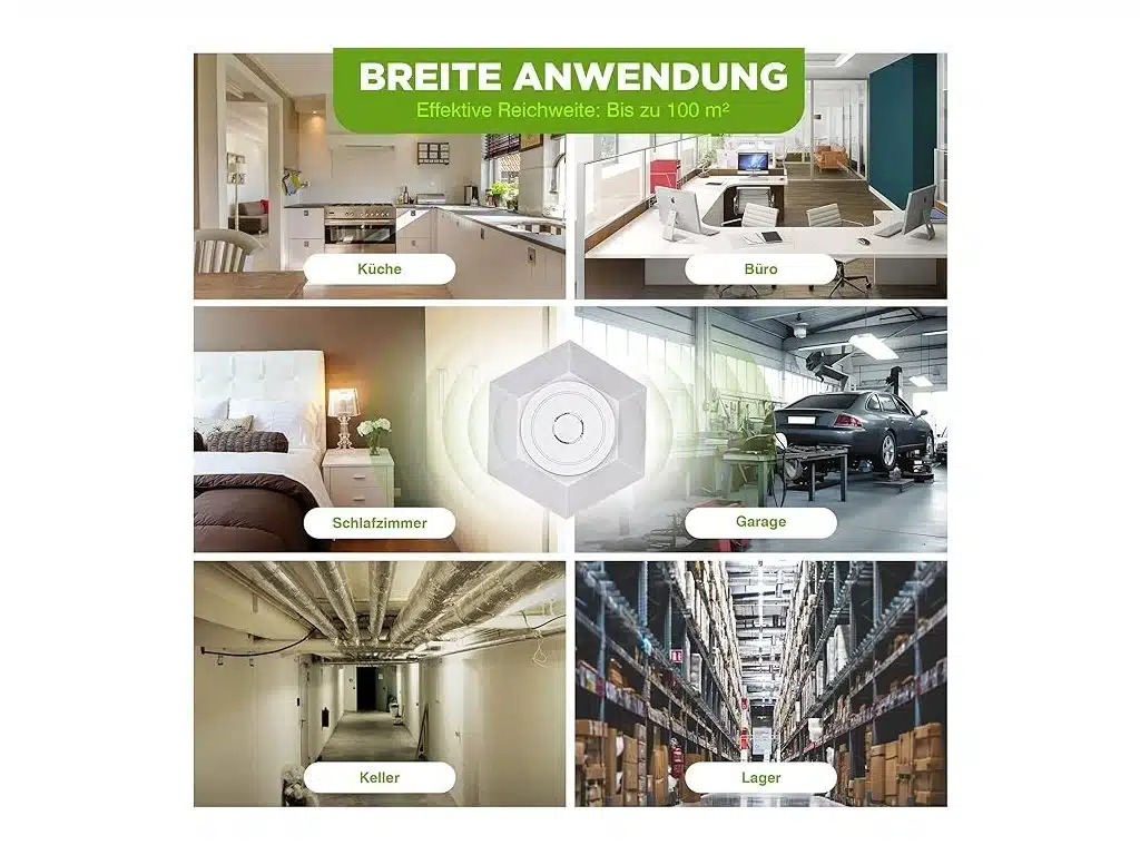 Pokrytie plochy až 100 m², pôsobenie v rozsahu 360°.