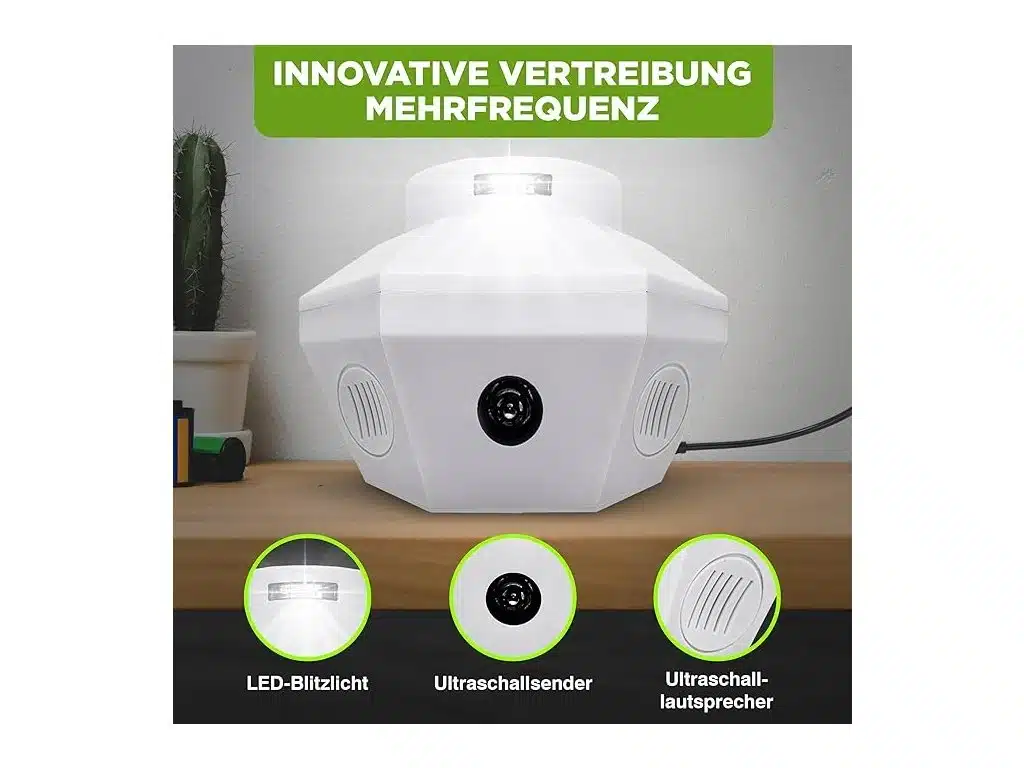 Pomocou premenlivých frekvencií (25 – 65 kHz) vysiela zvukové signály, ktoré sú pre ľudí nepočuteľné, no pre myši, potkany, kune či plchy veľmi nepríjemné.