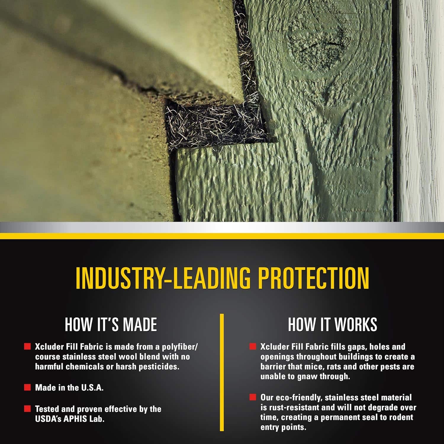 Xcluder® Fill Fabric 162706 je prvotriedne riešenie na ochranu proti hlodavcom, ktoré kombinuje vysokú odolnosť oceľovej vlny s pružnosťou polyfibrových vlákien. Tento produkt, navrhnutý na utesnenie vstupných bodov, ako sú praskliny a otvory v budovách, je účinnou bariérou proti hlodavcom, ktorá im znemožňuje preniknutie do interiérov. Xcluder® Fill Fabric sa používa po celom svete a je oceňovaný pre svoju dlhodobú ochranu, ľahkú inštaláciu a ekologický prístup.