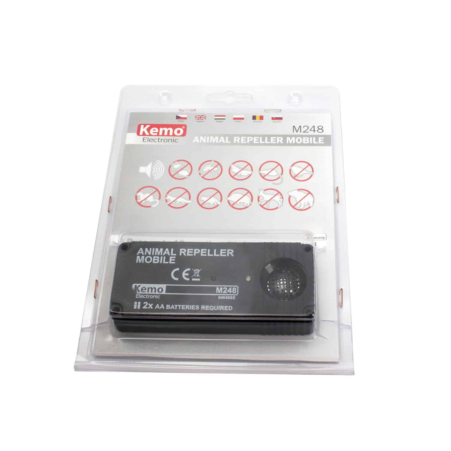 KEMO® M248 je prenosný odpudzovač určený na humánne a bezúdržbové plašenie drobných aj väčších zvierat. Vysiela silné ultrazvukové signály v premenlivých frekvenciách, ktoré sú pre ľudí nepočuteľné, ale pre zvieratá veľmi nepríjemné. Tým ich spoľahlivo odradí od vstupu do chráneného priestoru.