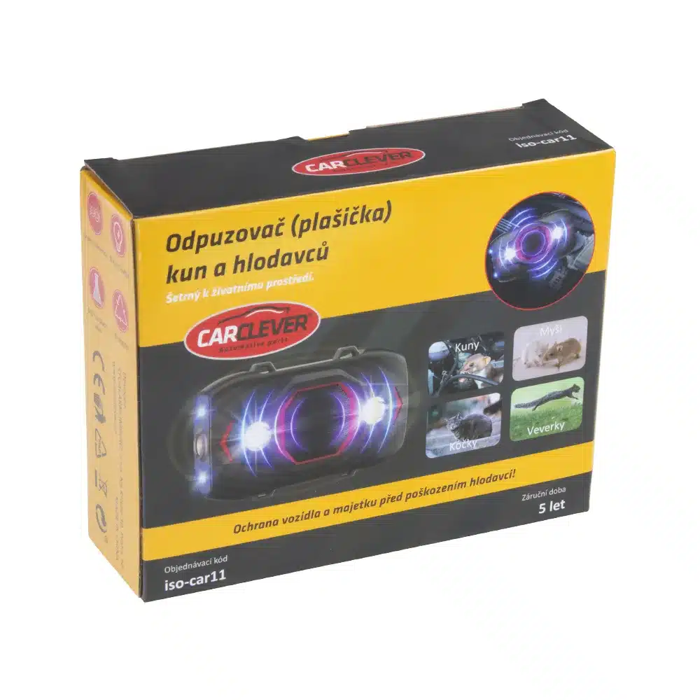 Odpudzovač kún a hlodavcov CARCLEVER CAR ISO-CAR11 slúži ako univerzálny plašič motorových priestorov, garáží, pôd či lodí. Prístroj následne vysiela premenlivé ultrazvukové tóny vo frekvencii 22–50 kHz, ktoré sú pre ľudí nepočuteľné. Tieto zvuky následne vytvárajú pre škodcov mimoriadne nepríjemné prostredie, ktoré ich následne núti chránený priestor opustiť. Výrobca následne vybavil model dotykovým spínačom a LED kontrolkou pre maximálne pohodlie pri ovládaní. Tým následne zabezpečíte stopercentnú ochranu vášho majetku pred prehryznutím káblov a inými škodami.
