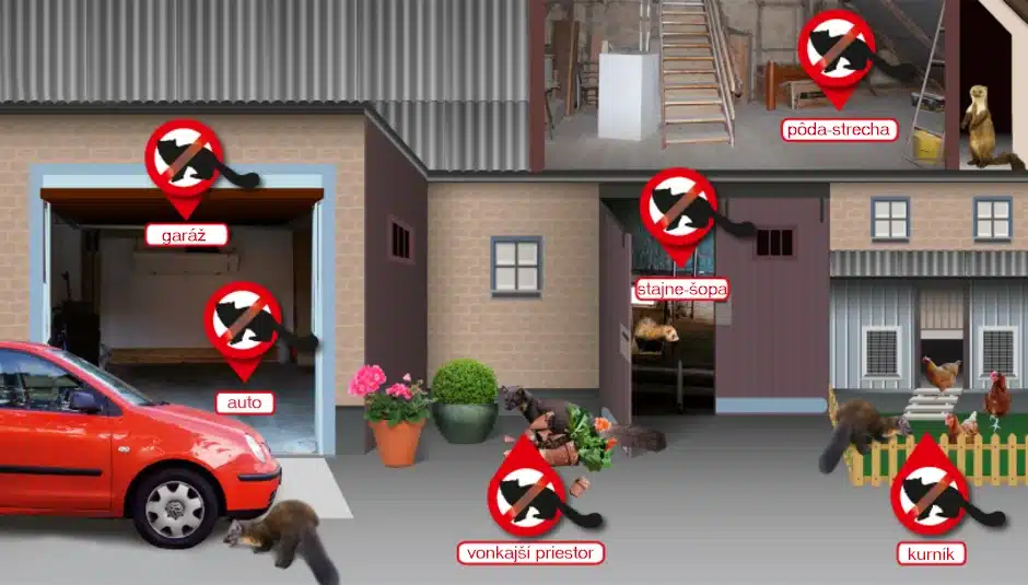 Výrobok je vhodný na odpudzovanie škodnej zveri z všeobecných priestorov ako sú votavů, kôlne, sklady, stajne, chlievy, kuríny, cesty zvierat, parapety, odkvapy, drevené trámy, prahy dverí, okenné rámy, rebríky, schody a podobne, kde radi škodí . Ďalej je vhodný na odpudenie kún z motorového priestoru vozidla, kde spôsobujú veľké škody na vykousané izoláciu, prehryznuté elektroinštaláciu alebo na hadiciach brzdového systému – možno aplikovať aj na pohyblivé časti.