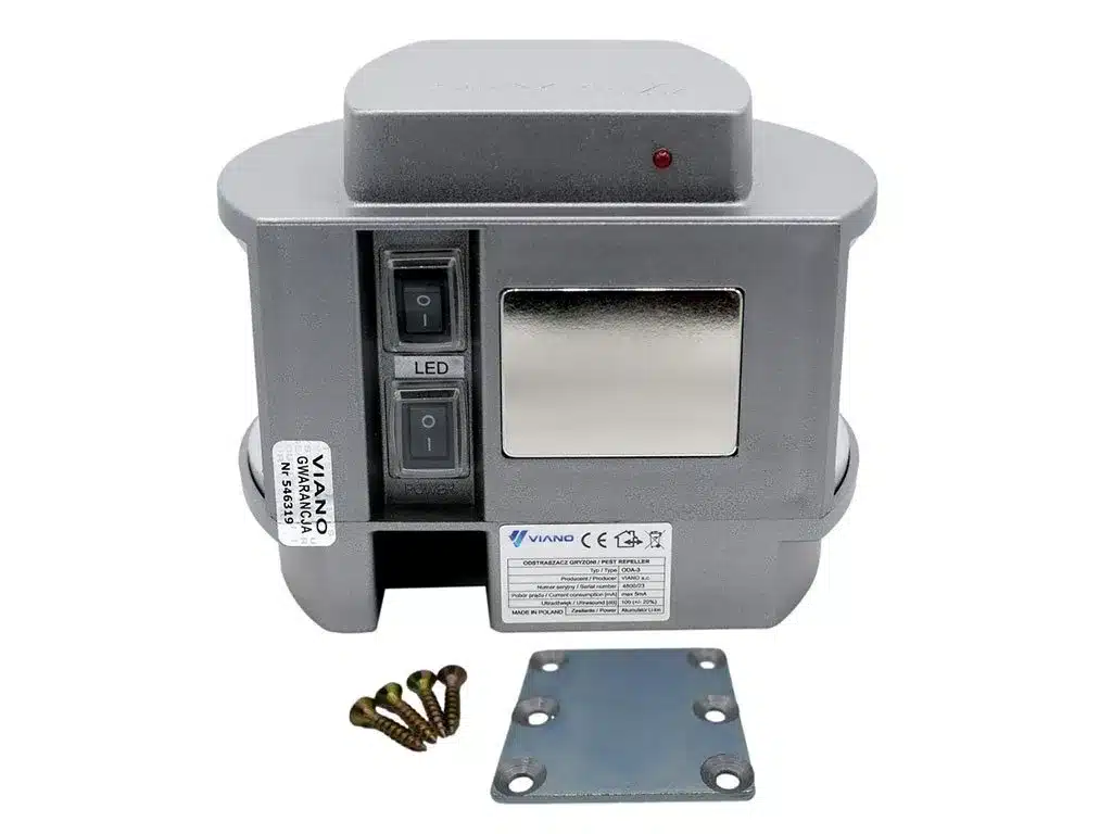 Priestorový, vodotesný, ultrazvukový odpudzovač na kuny, myši a potkany VIANO ODA-3 TRIO