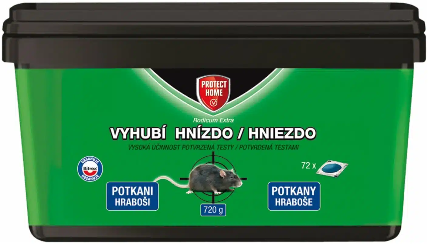 - Vysoká účinnosť: RODICUM EXTRA bol navrhnutý tak, aby bol pre potkany a hraboše neodolateľný, pričom rýchlo a účinne eliminuje populáciu týchto škodcov.