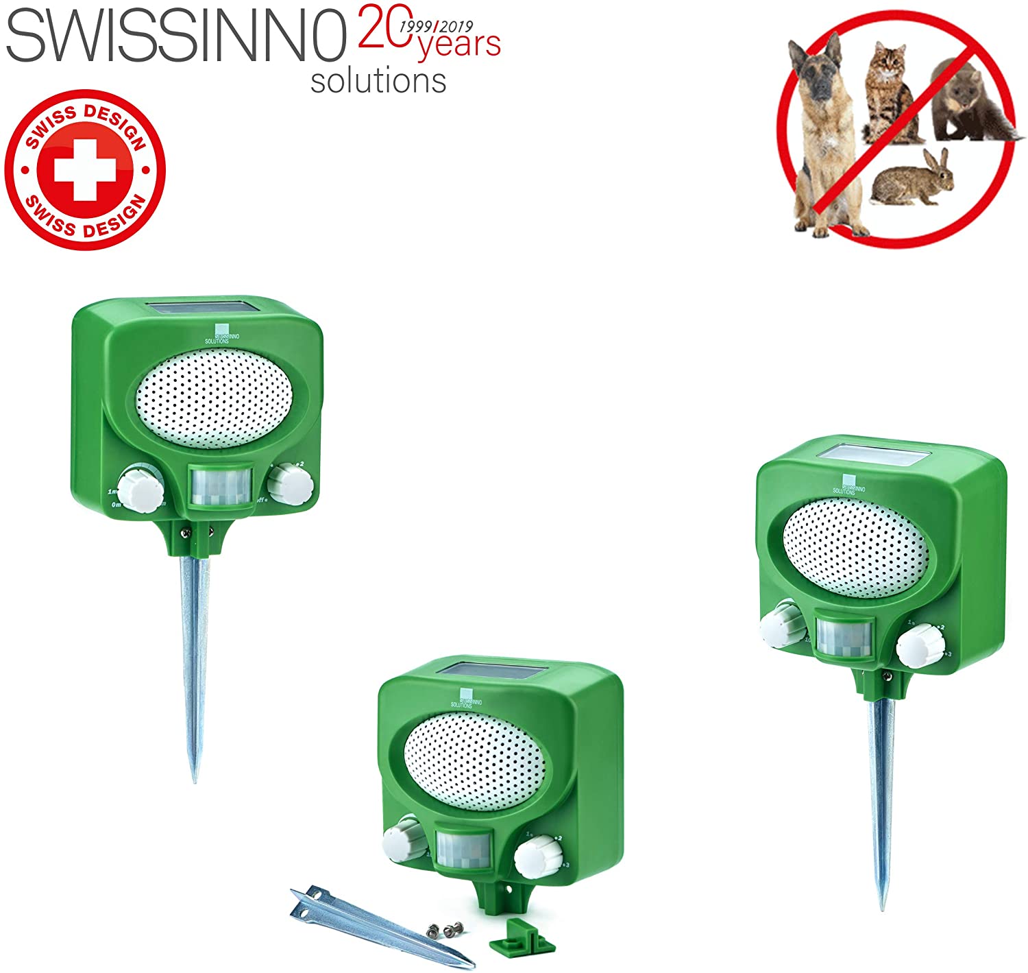 SWISSINNO kladie dôraz na kvalitu materiálov. Solárny ultrazvukový odpudzovač zvierat SWISSINNO má robustné puzdro, ktoré odoláva UV žiareniu, mrazu aj silným dažďom. Pre zachovanie 100% funkčnosti odporúčame raz za čas pretrieť solárny panel vlhkou handričkou. Odstránenie prachu a nečistôt výrazne zvýši efektivitu nabíjania, čo oceníte najmä v zimných mesiacoch. FAQ – Často kladené otázky: