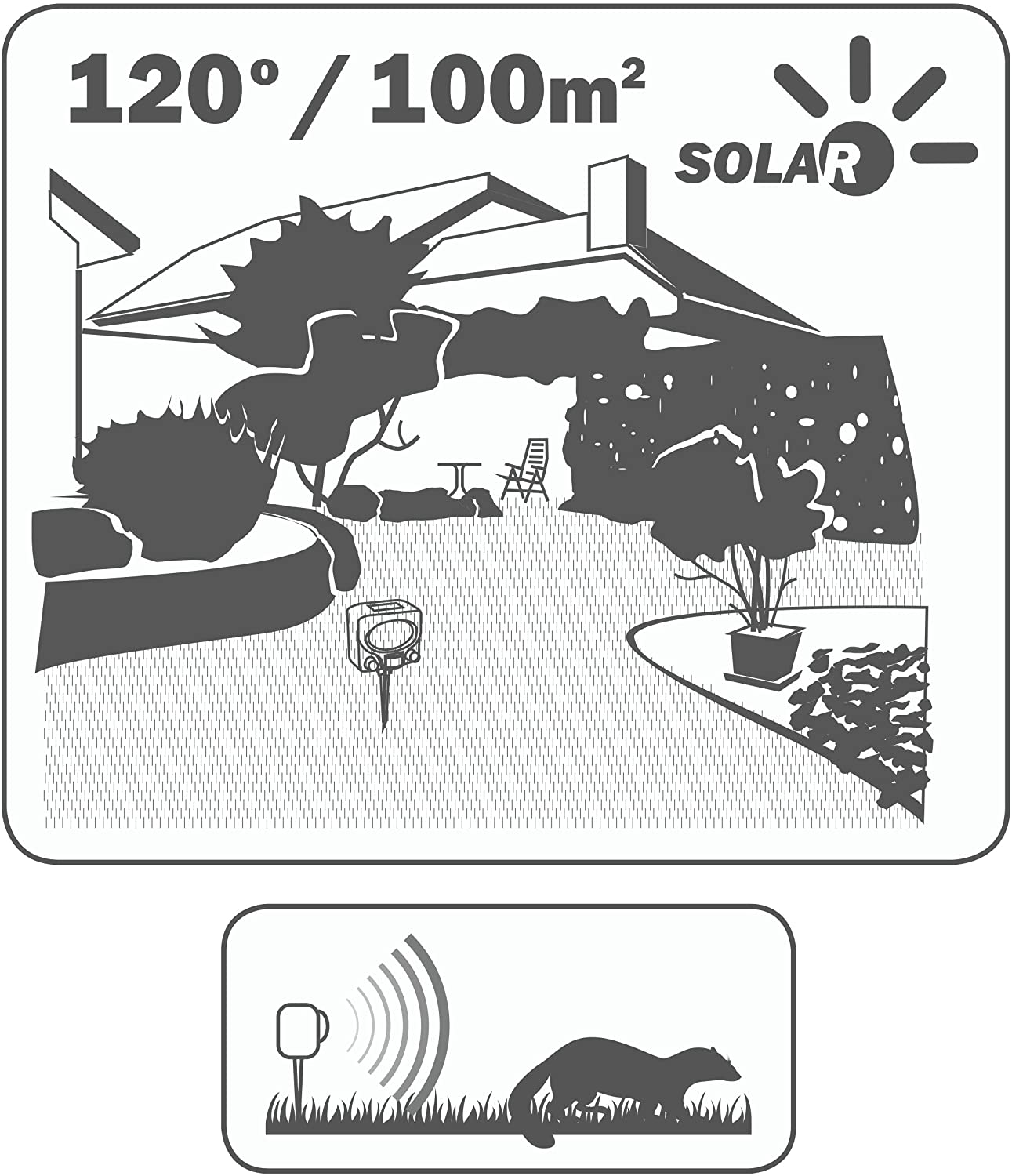 Ak vás trápia mačky, psy alebo kuny, solárny ultrazvukový odpudzovač zvierat SWISSINNO ponúka profesionálne riešenie. Výrobca navrhol tento prístroj tak, aby vytváral neviditeľnú akustickú bariéru. Ultrazvukové vlny zvieratám nespôsobujú bolesť, no sú im natoľko nepríjemné, že sa vašej záhrade začnú vyhýbať. Týmto spôsobom ochránite svoje záhony aj auto pred poškodením úplne humánnym spôsobom. Hlavné funkcie a výhody
