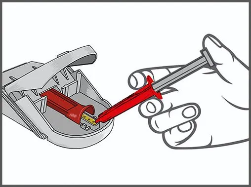 Jednoducho odstránite uzáver, vytlačíte malé množstvo návnady do pasce a opäť uzavriete.