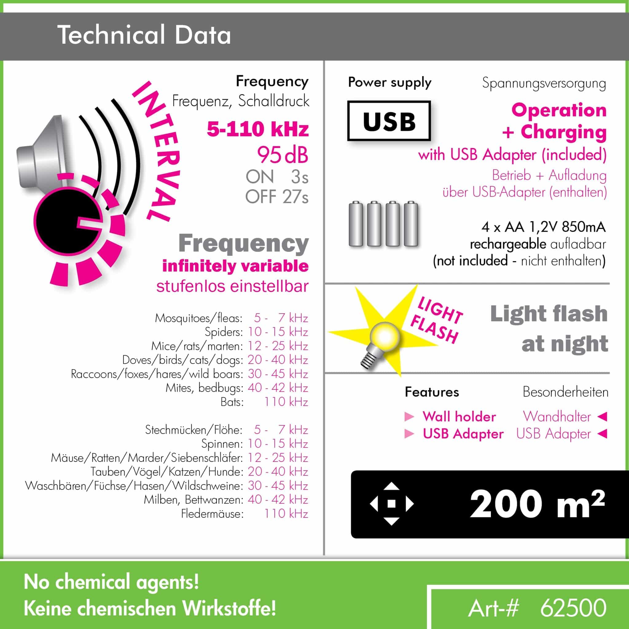 - Duálna ochrana: Kombinuje nepríjemný ultrazvukový signál s vizuálnym odstrašením pomocou LED bleskov.