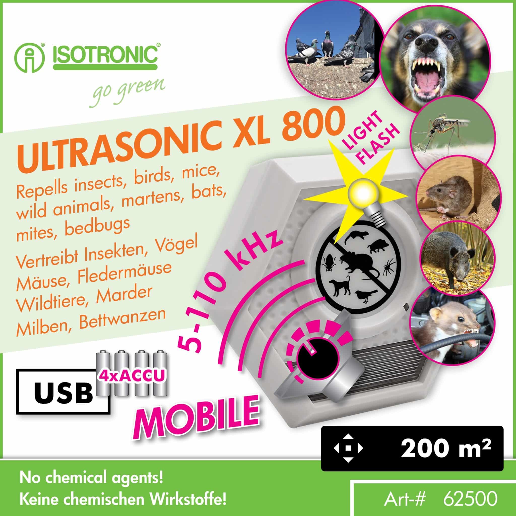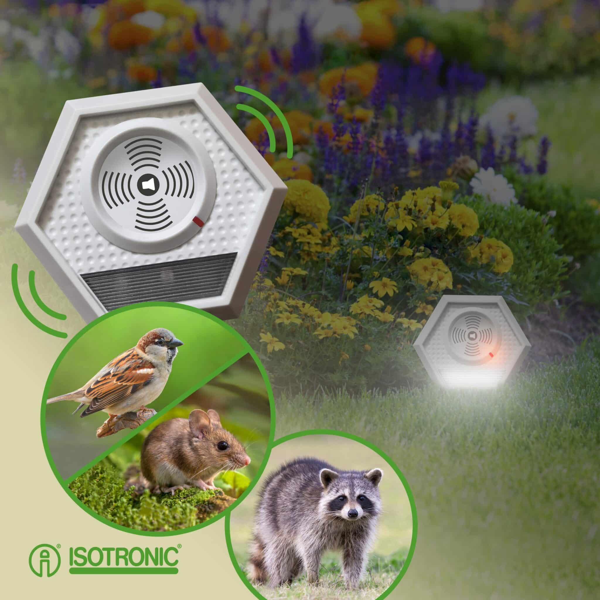 ISOTRONIC Ultrasonic XL 800 – Všestranný strážca vášho majetku Univerzálny plašič Ultrasonic XL 800 od renomovanej značky ISOTRONIC rieši problémy s nevítanými návštevníkmi na záhrade, viniciach, balkónoch či v okolí vozidiel a lodí. Prístroj vysiela variabilné ultrazvukové vlny s akustickým tlakom až 95 dB, ktoré priamo ovplyvňujú sluchový a nervový systém škodcov. Spôsobené nepohodlie núti zvieratá a hmyz opustiť ošetrenú oblasť a hľadať si prístrešie inde. Navyše, integrovaný fotosenzor aktivuje v noci tri silné LED diódy, ktoré svetelnými zábleskami vystrašia nočných predátorov a divú zver.