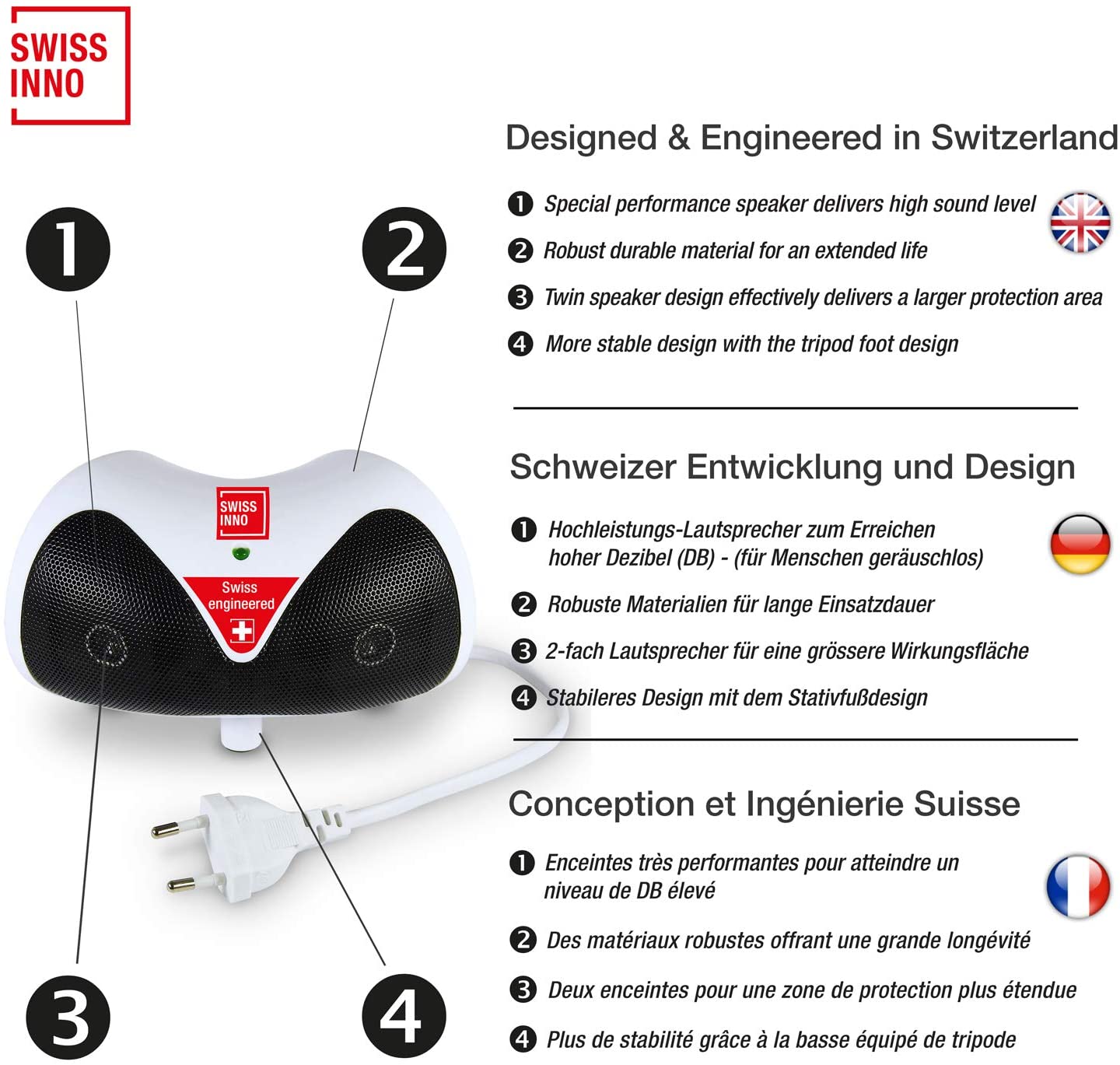 Ultrazvukový odpudzovač hlodavcov SWISSINNO 30m² je navrhnutý na humánne a ekologické odháňanie myší a potkanov z vnútorných priestorov. Zariadenie vysiela nepretržité vysokofrekvenčné vlny, ktoré sú pre ľudí a domáce zvieratá nepočuteľné, no pre hlodavce mimoriadne nepríjemné, čo ich núti opustiť chránenú oblasť.