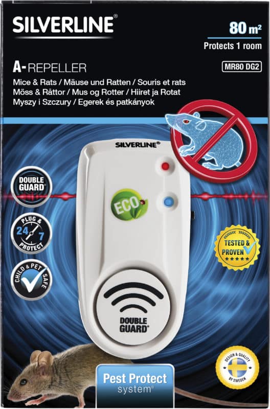 A-Repeller MR80 DG2MR80 DG2 chráni myši a potkany vo vnútri – efektívne, hygienické a netoxické. Silverline® Double Guard® je unikátna zvuková technológia, ktorá účinne odháňa škodcov.