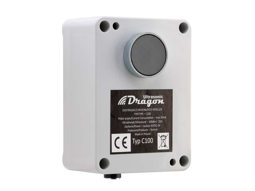 Plašič na kuny, myši a potkany DRAGON ULTRASONIC C100 Ultrazvukový odpudzovač zveri vhodný na plašenie kún a hlodavcov, bezpečný pre človeka i domáce zvieratá. Na použitie vo vnútorných i vonkajších priestoroch, vybavený odolným vodotesným krytom s možnosťou uchytenia cez magnetický držiak. Odpudzovač kún s rozsahom tónu v uhle 180 ° s automatickou zmenou kmitočtu a dosahom až 1500 m2, s napájaním pře 6V adaptér. Plašič kún používa 1 x 50 mm membránový reproduktor, rozmery ultrazvukového odpudzovače 60x85x55mm.