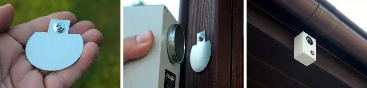 Odpudzovač Dragon Ultrasonic pripevníte pomocou magnetického držiaku ľahko, rýchlo a bezpečne na takmer akýkoľvek povrch. Odpudzovač je vybavený silným magnetom, používaným v priemyselnej upevňovacej technike. Stačí tak kúsok kovového povrchu, napr. potrubia, zábradlia, odkvap, kovový parapet, strešné konštrukcie, kúrenie atď. A ihneď máte bez akejkoľvek montáže prístroj nainštalovaný. Ak v ošetrovanom mieste nie je žiadny kovový povrch, na ktorý by bolo možné odpudzovač umiestniť, je možné využiť špeciálneho kovového prívesku, ktorý je súčasťou balenia. Kovový prívesok priskrutkujete na požadované miesto a potom na neho pomocou magnetu odpudzovač jednoducho pripevníte.